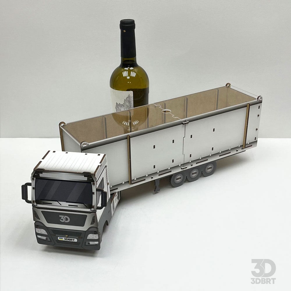 3D дерев’яний конструктор вантажівки під пляшку вина — це оригінальний набір, який збирається без жодної краплі клею! Усього 55 точно вирізаних деталей легко з’єднуються між собою, перетворюючись на стильну вантажівку-бар. Прозорий дах із акрилу дозволяє бачити пляшку всередині, а дерев’яна текстура додає моделі природного шарму та відчуття ручної роботи. Дерев’яний пазл вантажівки під винну пляшку на відео 3DBRT.
