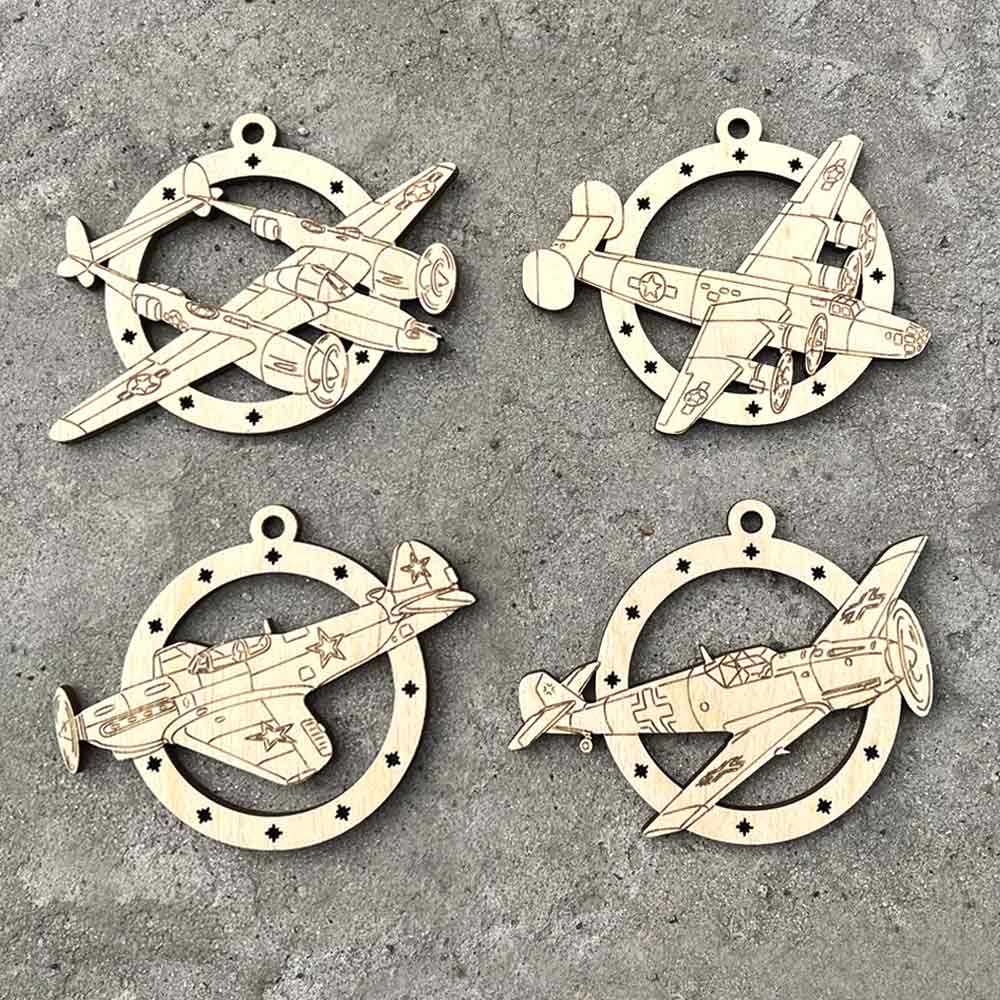 Літаки Другої світової війни — це набір підвісних дерев’яних прикрас, що об'єднує чотири знакові моделі бойових машин часів WW2. У колекції представлені моноплани, які стали символами своєї епохи. У наборі: Яковлев Як-9, Локхід Lightning, Мессершмітт та Консолідейтед Liberator — авіаційні легенди, що брали участь у ключових повітряних битвах Другої світової. Це унікальний декор для ялинки, стіни, монітора чи тематичної колекції, створений для поціновувачів історії авіації.